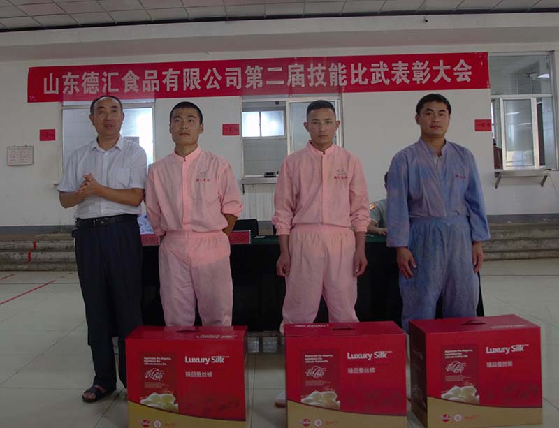 一份份榮譽證書,一件件精美獎品,代表的是公司的深情厚誼,是對員工技術水平的肯定,也營造公司內部敢比敢超的良好氛圍,通過這次技術比武,全體員工的技術水平又躍上一個新臺階!預示著公司整體水平向新的目標跨越!揚帆遠航的德匯食品,一定會越來越好!